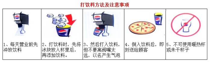 2、打飲料時,先將冰塊放入杯里后,再添加飲料;