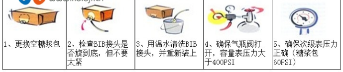 5、確保次級表壓力正確(糖漿包60PSI)。