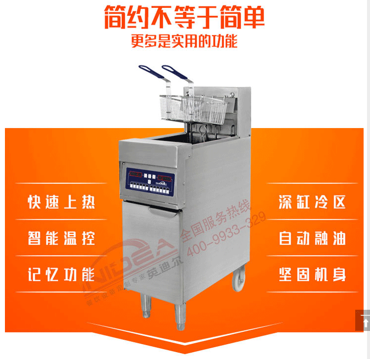 電炸爐、油炸爐缸體采用優(yōu)質(zhì)鋼材制作,可以油炸雞腿,雞翅,魷魚,香腸,薯條,炸魚,雞腳,牛排,漢堡,肉串,雞柳,臭豆腐,蘑菇,蔬菜類等等小吃。體積小,適合在酒吧、迪吧、酒店、賓館等休閑娛樂場所以及集市、商業(yè)街、車站、學校、游樂場等加工油炸食品進行銷售。